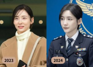顎や輪郭:2023年は引き締まりが見られ、2024年にはさらにシャープさが強調されている。